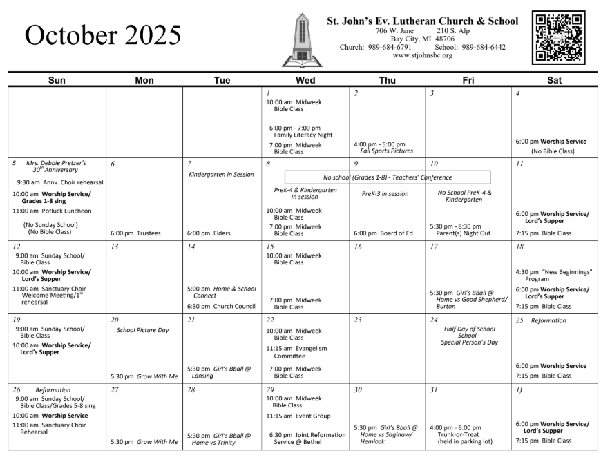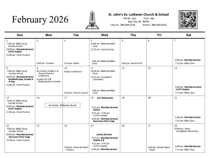 St. John’s Church Calendar